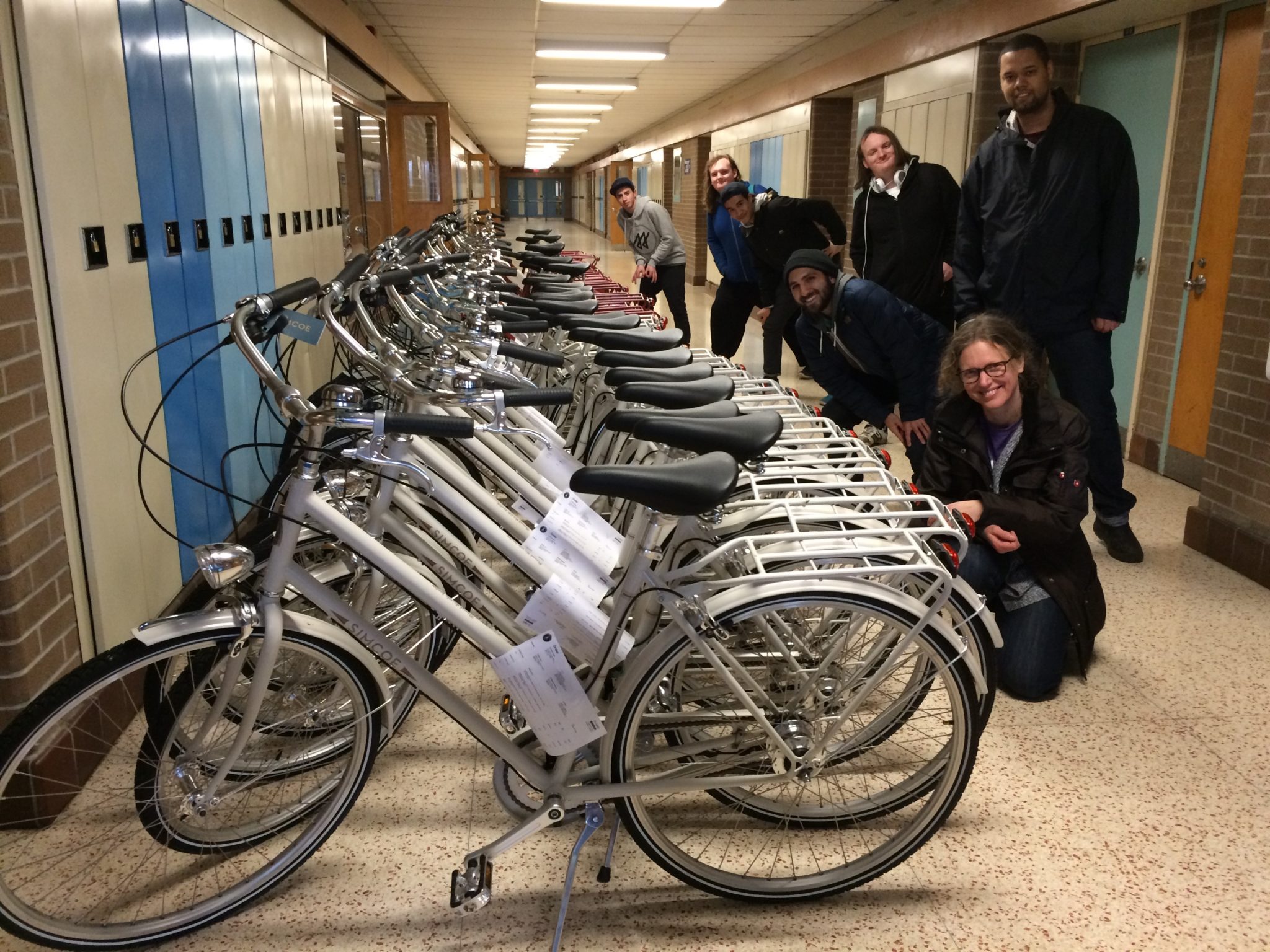 Kipling Collegiate Institute is the proud host of a fleet of bicycles thanks to the Bike to School Project! The bikes were delivered on March 1, 2017, and will be used by students and staff during education programs and an after-school bike club. CultureLink will maintain the bicycles and help teachers organize activities, in the same way we do at Central Toronto Academy and West Hill Collegiate Institute. We are finalizing details with a North York school as we speak!