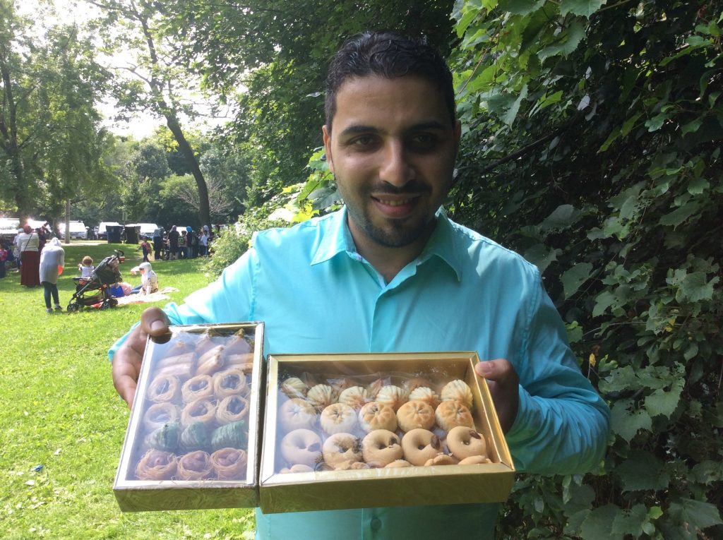 After he completed the program, he started two businesses in food catering and the production and sale of different types of Arabic sweets. He volunteered to provide Syrian isolated families with delicious Arabic sweets during CultureLink High Park trip in the summer.