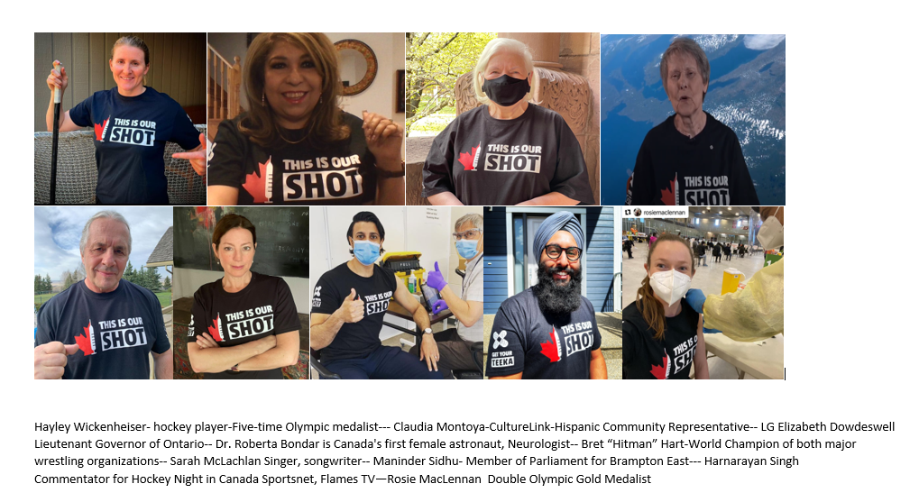 Doctors, athletes, celebrities, astronauts, front-line professionals have banded together to tackle vaccine hesitancy, to deliver the public health message to underserved communities and to encourage more Canadians to get inoculated.