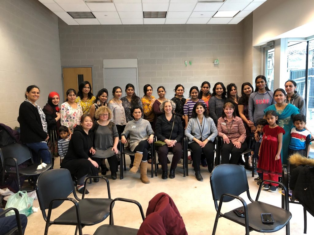 On November 17, 2018, the Women’s Empowerment Session wrapped up and 25 women and 17 children came out to join in a celebration. Women shared testimonials about the importance of getting involved in the community and they all received certificates of involvement as participants and volunteers. Funded by the Ministry of Children, Community and Social Services, this program has also been boosted with the important support and contributions of the Toronto Soroptimist Club who joined in the celebration and share information about the Club and its mandate of women helping women for empowerment and the prevention of violence against women. Sumptuous food was prepared by the women and food and games and networking were enjoyed by everyone in attendance. The event was organized by Shelina Rangwala with support from Marina Sokolov, Yan Gu and Lisa Randall. The Women’s Group is currently working on personal story sharing with dramatic exploration with artist/facilitator Sharada Eswar which provides creative and healing sharing opportunities.